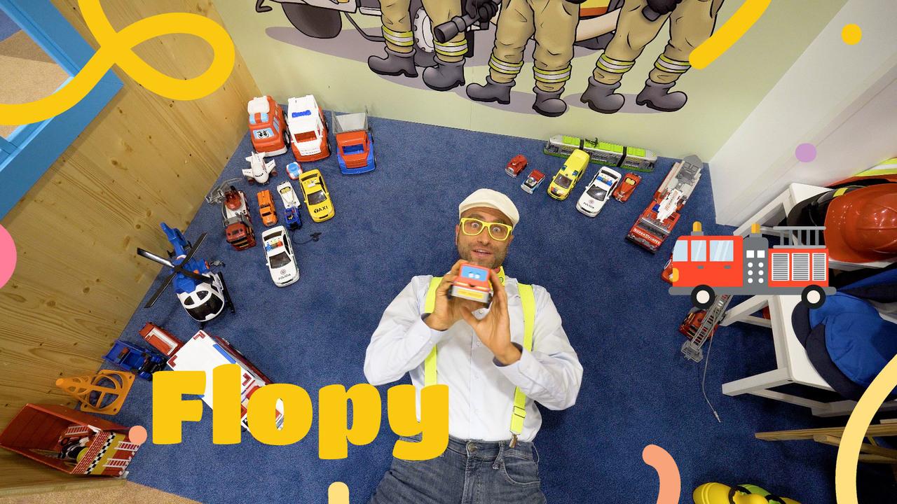 Flopy si najskôr v detskom kútiku natrénuje všetko, čo potrebuje vedieť o práci hasiča, a potom sa odváži navštíviť skutočnú hasičskú stanicu. Bude mu jeho tréning stačiť, alebo zistí, že práca hasiča je oveľa náročnejšia?