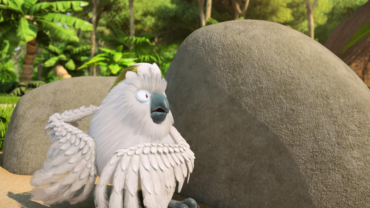 Kakadu prichádza do brlohu Es z pralesa a napodobňuje ich hlas, ktorými si navzájom dávajú príkazy alebo protichodné pokyny.
