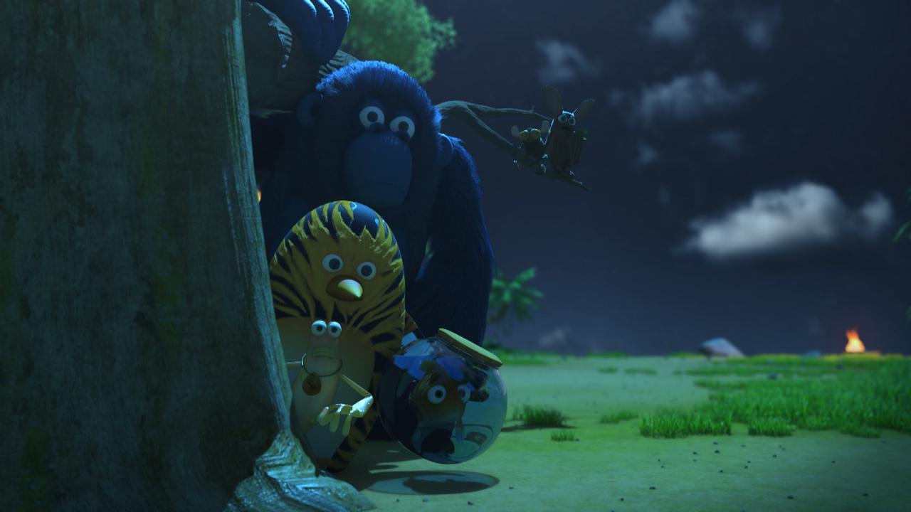 Slony šikanuje takzvaný prízrak. Skrytý za skalou ich duch žiada, aby mu dali všetko svoje ovocie ako obetu. Partička čoskoro zistí, že duch je len veľmi zvláštne zviera, chameleón, ktorý sa objavuje a mizne.