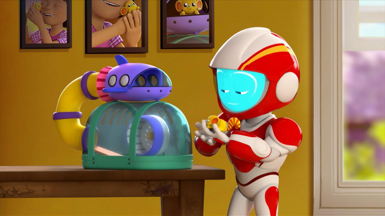 Roger a roboti opravia chlapcovu pokazenú naťahovaciu myš, ale keď sa prerobený a preplňovaný „myší robot“ začne zväčšovať po celom obchode, musia nájsť spôsob, ako ho chytiť!