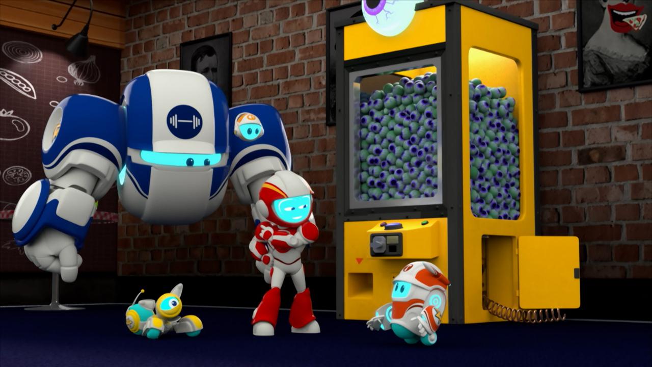 Roger a roboti sa pustia do nefunkčného automatu plného poskakujúcich gumených očiek. Ale ich pokusy napraviť to premenia na hyperpohonom poháňanú skákajúcu loptičku, ktorá straší!